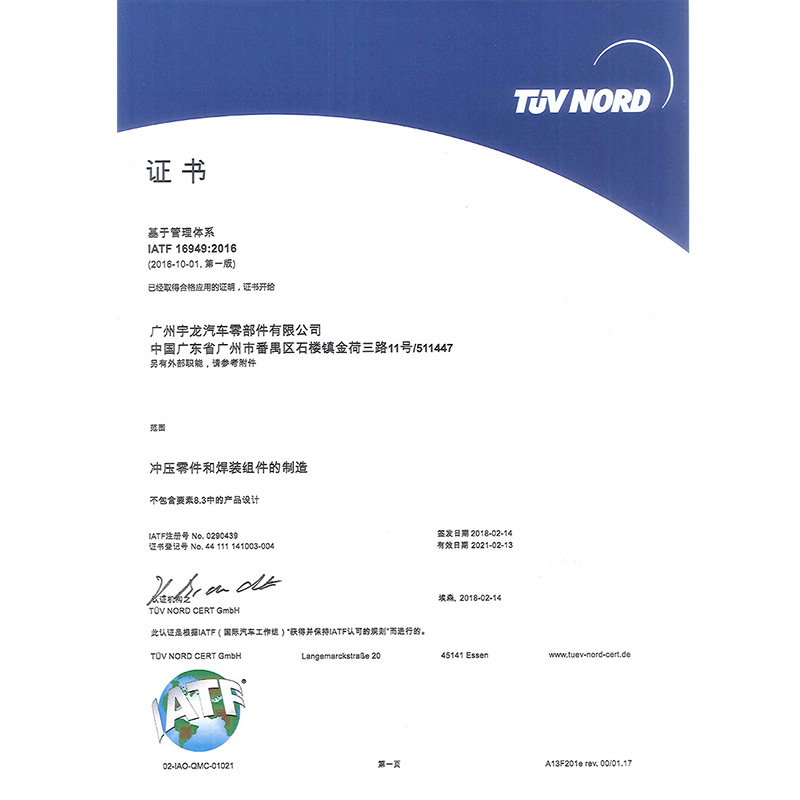 下設(shè)廈門(mén)宇龍機(jī)械有限公司、海南宇龍機(jī)械科技有限公司、湖南星宇龍機(jī)械有限公司、廣州宇龍汽車(chē)零部件有限公司。公司采用先進(jìn)的設(shè)計(jì)開(kāi)發(fā)技術(shù),擁有多項(xiàng)發(fā)明及實(shí)用新型專(zhuān)利,具有較強(qiáng)的核心競(jìng)爭(zhēng)力。公司管理規(guī)范,執(zhí)行IATF16949質(zhì)量體系標(biāo)準(zhǔn)、ISO3834國(guó)際焊接質(zhì)量管理體系,竭誠(chéng)為客戶(hù)提供優(yōu)質(zhì)的產(chǎn)品和服務(wù)。